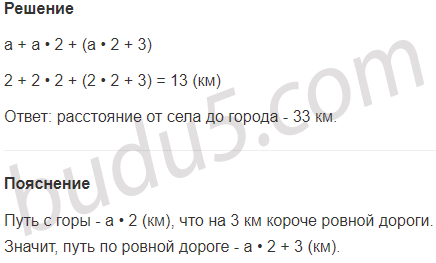 Задание № 9. Чтобы попасть из села в город, нужно подняться в гору, спуститься вниз и пройти по ровной дороге. Подъём в гору составляет а км, путь с горы - в 2 раза длиннее, чем путь в гору, и на 3 км короче ровной дороги. Чему равно расстояние от села до города?
