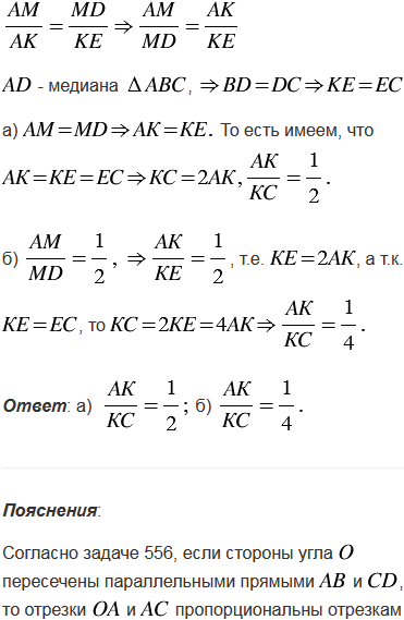 Через точку М, взятую на медиане AD треугольника АВС, и вершину В проведена прямая, пересекающая сторону АС в точке К. Найдите отношение